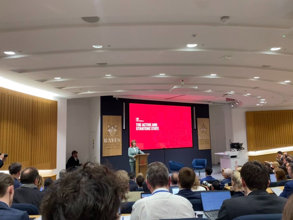 Rachel Reeves delivering her second Mais lecture to a group of experts and journalists at Bayes Business School, Credit: Frank Wolfreys